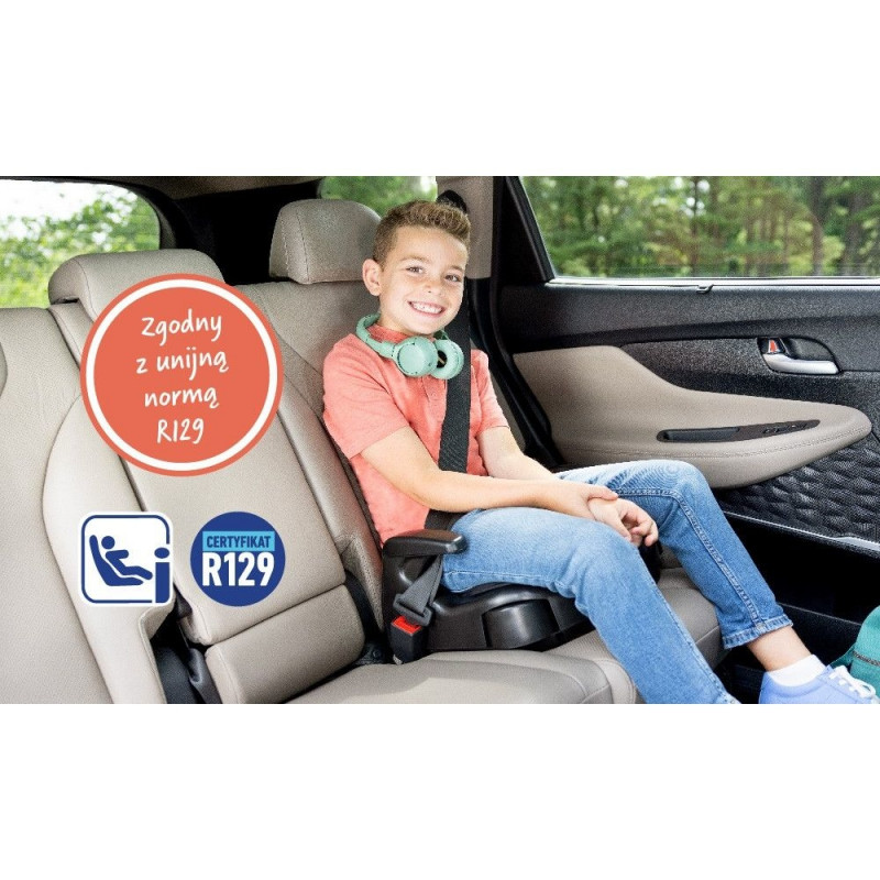 Praktiline ja kerge booster-tüüpi turvaiste on mõeldud lastele umbes 6–7. eluaastast kuni 12. eluaastani. Turvaiste vastab R129 i-Size standardile, mis tähendab, et see iste on läbinud ranged testid, et tagada lapsele maksimaalne ohutus igal autosõidul. Kasvule vastavad käetoed ning kaks sisse tõmmatavat topsihoidjat toovad laste näole naeratuse. Polsterdatud kate on masinpestav.