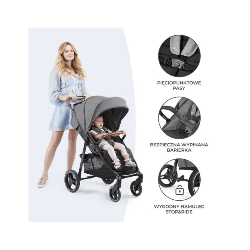 Jalutuskäru iste on lai ja sügav – seetõttu on ka suurematel lastel seal mugav. Istmel on reguleeritavad, 5-punkti turvarihmad koos pehmenduste ja jalgevahe kaitsega.