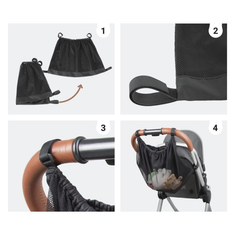 The SIPO mesh organizer is designed to store and organize essentials during walks with your child. It is intended for use with strollers and prams. Ideal for short strolls, daily outings, and travel with a baby.
