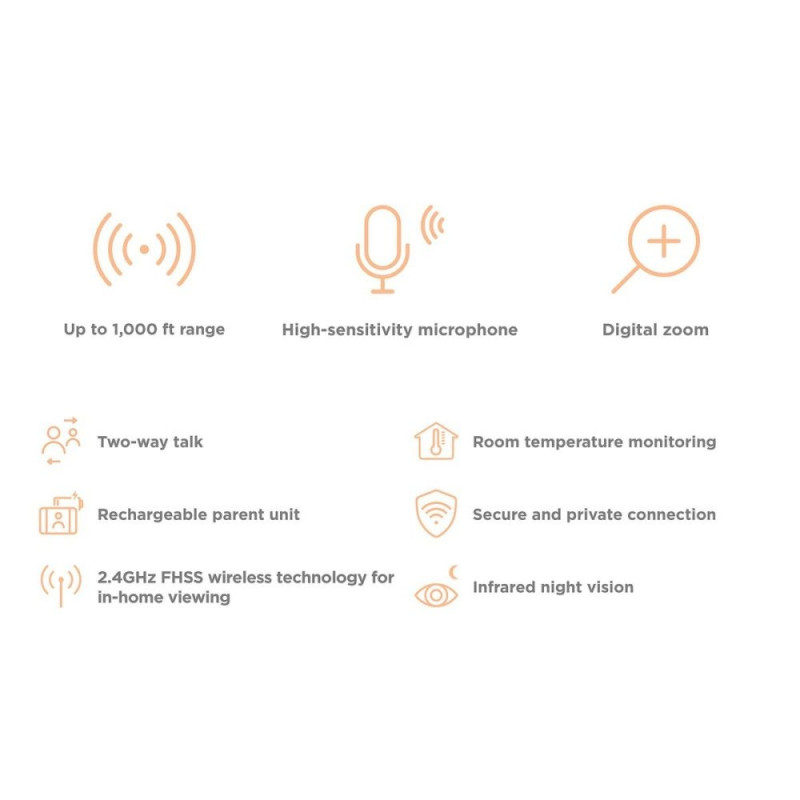 Vigilabebés Motorola VM483 on täiustatud beebimonitor, mis pakub vanematele meelerahu ja täielikku kontrolli tänu oluliste funktsioonide hoolikale integreerimisele. Sellel on 2,8-tolline värviline ekraan, mis võimaldab selget ja teravat pilti beebist, ning kaugjuhitav digitaalne suum detailseks jälgimiseks. Infrapuna öövaatega kaamera tagab pideva järelevalve ka vähese valguse korral, võimaldades öist jälgimist ilma tuppa sisenemata. Turvalisust suurendab 2,4 GHz FHSS juhtmevaba tehnoloogia ja turvaline andmete krüpteerimine, pakkudes stabiilset ja kaitstud ühendust kuni 300 meetri ulatuses, mis tagab liikumisvabaduse kodus. Seadmel on kõrgtundlik mikrofon ja integreeritud kõlarid kahepoolseks suhtluseks, võimaldades kuulata ja rääkida beebiga igal ajal. Oluliste funktsioonide hulka kuuluvad helitugevuse reguleerimine, visuaalne helitaseme indikaator ja ECO-režiim energiatõhususe optimeerimiseks. Lisaks jälgib see ruumi temperatuuri, aidates hoida beebi jaoks parimaid tingimusi. Motorola VM483-l on ka eelinstallitud unelaulud, mis sobivad ideaalselt rahustamiseks ja uinumise hõlbustamiseks, ning valge värvusega disain, mis sobib igasse kodusesse keskkonda. Valmistatud Hiinas, vastab see mudel tänapäevastele ohutus- ja funktsionaalsusstandarditele lastehoius, olles praktiline ja usaldusväärne vahend beebi heaolu jälgimiseks nii päeval kui öösel.