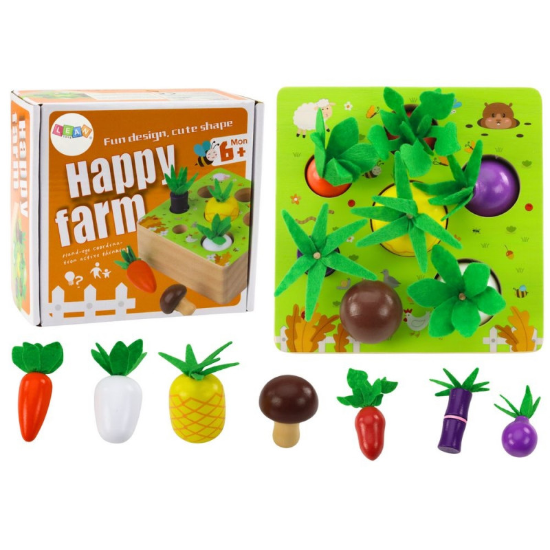 Mängu põhielemendiks on tugev puidust alus, millel on ümmargused avad, kuhu asetatakse 7 armsat värviliste puuviljade ja köögiviljade kujulist nuppu.
