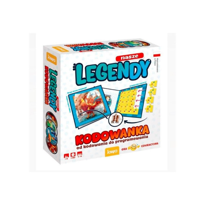 Koodimisest programmeerimiseni. Koodimismäng sisaldab pilte, mis kujutavad stseene neljast legendist: Basilisk, Kuldne Part, Härra Twardowski, Waweli Draakon. Pildid on jagatud 25 ruudukujuliseks elemendiks. Iga elemendi tagaküljel, värvilisel taustal, on kood – igal legendil on oma värv. Kõik ühe värvi elemendid tuleb paigutada vihikusse vastavalt koodidele. Kui elemendid on õigesti paigutatud, ilmub vihiku sulgemisel ja selle ümberpööramisel aknasse legendi pilt. Juhendi lõpus on lühikesed kirjeldused nelja legendi kohta. Enne koodimise alustamist soovitame lapsele valitud legendi kirjeldust ette lugeda.