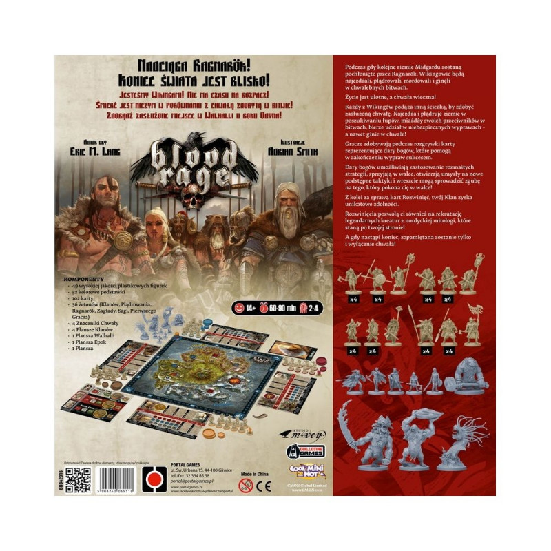 Blood Rage on kõrgeima kvaliteediga toode, mis jätab teised mängud varju. Mängu dünaamika, reeglite ühtsus, mängijatevaheline interaktsioon, kaovad mängulaua osad ja värvikas kujundus on tõeline „kuritegu“ – see peaks olema keelatud! Kirsiks tordil on Blood Rage’i süda – figuurid! Üheski teises lauamängus ei leia nii detailseid mudeleid. Siin on 4 klanni, igal neist erinevad figuurid, millel on klannile iseloomulikud detailid, ning imelised müütiliste koletiste figuurid, mis äratavad su rivaalides kadedust ja hirmu!