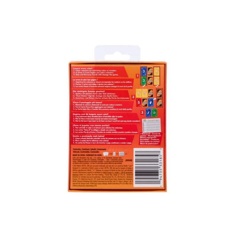 UNO kaardimängu fännid armuvad selle uude põnevasse versiooni: UNO Zero. Mängu eesmärk on saavutada võimalikult madal, ideaalis nullilähedane tulemus. Selle asemel, et hoida kaarte käes, asetavad mängijad mängu alguses enda ette kinnised kaardid 2×3 ruudustikus. Seejärel vahetavad nad suurema väärtusega kaardid väiksemate vastu, püüdes vastaseid üle kavaldada ja koguda võimalikult vähe punkte. Tulemused peaksid olema madalad, kuid emotsioonid kõrged! Lisaks on igal kaardil spetsiaalsed pildid, mis aitavad tuvastada selle värvi ning võimaldavad ka neil mängijatel, kellel on raskusi värvide eristamisega, mängust hõlpsasti osa võtta. Erikaardid, nagu Suuna muutus ja Vahelejätmine, muudavad mängu kulgu. UNO Zero on seltskondlik kaardimäng 2–8 mängijale alates 7. eluaastast, mis ühendab suurepärase meelelahutuse ja strateegia, sobides ideaalselt pere või sõpradega mänguõhtuks. Värvid ja dekoratiivsed elemendid võivad erineda.