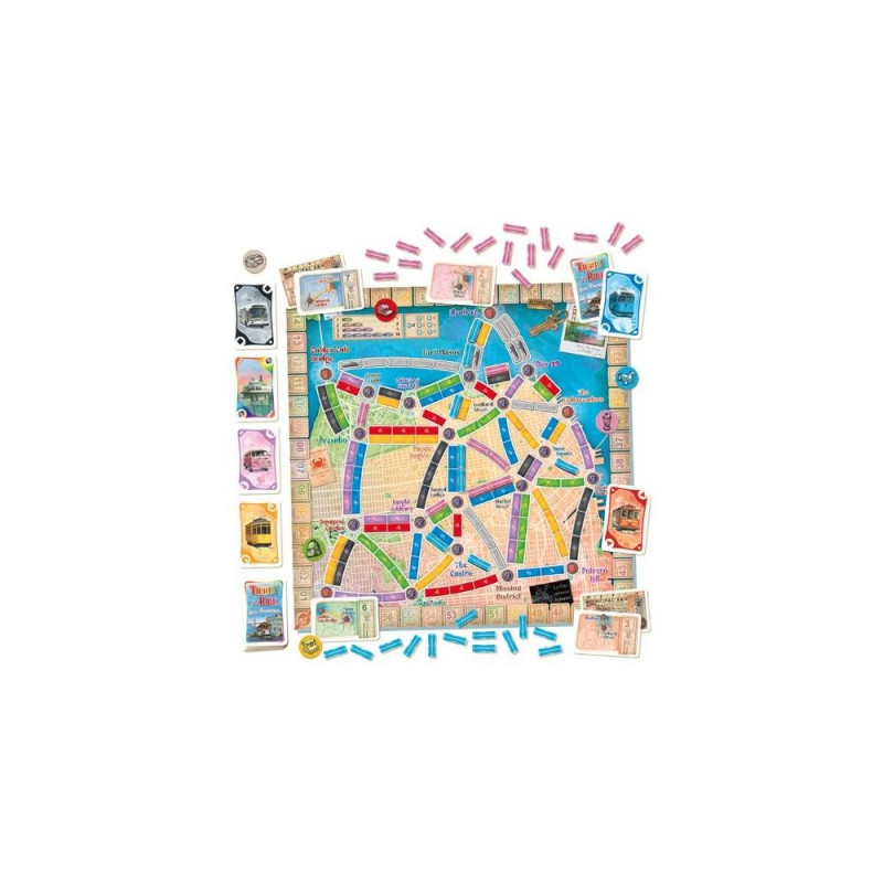San Francisco<br>Welcome to the Bay! Souvenirs weigh heavy in your bag as you lean out from the cable car. Sunlight shimmers through the mist that obscures your view of Alcatraz and the Golden Gate Bridge. San Francisco is truly the Golden City!<br><br>In this fast-paced Ticket to Ride game, players race one another to visit the most iconic locations of the city, and collect souvenirs along the way. The elegantly simple gameplay of this stand-alone version of Ticket to Ride is ideal for both beginners and seasoned players.<br><br>- 1 board map of San Francisco’s transportation network<br>- 80 Cable Cars (20 in each color)<br>- 21 Tourist Tokens<br>- 44 Transportation cards<br>- 24 Destination Ticket cards<br>- 4 Scoring Markers<br>- 1 rule leafletDays of Wonder Ticket to Ride: San Francisco. Product type: Board game, Genre: Travel/adventure, Recommended age (min): 8 yr(s), Playing time: 15 min, Family game