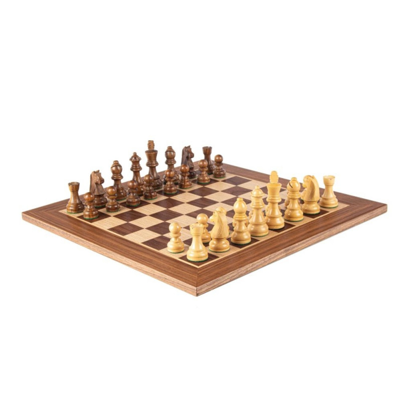 Chess Set - Manopoulos Walnut Oak 40x40cm Staunton Weighted Pieces
