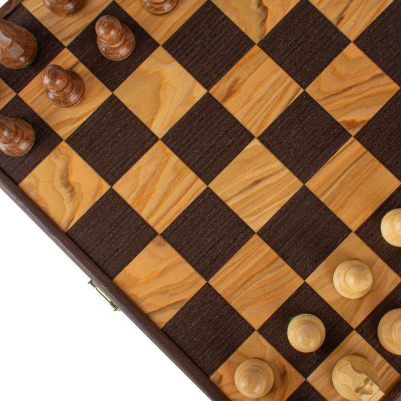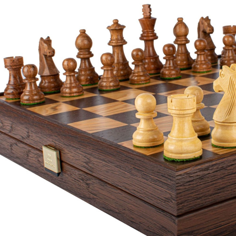 Chess Set - Manopoulos Olive Burl 35x35cm Staunton Pieces 7.6cm King