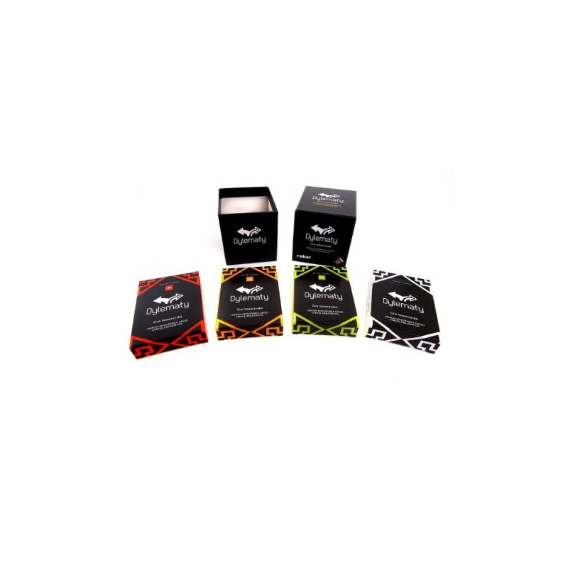 55 dilemmakaarti surmast, seksist ja tõelisest usaldusest. Hullumeelsed teemad, abstraktsed probleemid ja keerulised moraalsed küsimused. Need jäävad teile kauaks meelde...
