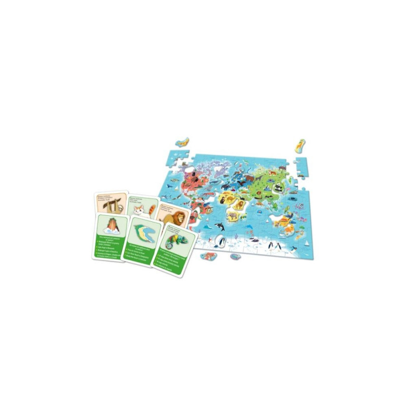 Mäng sisaldab maxi-puslet, mis kujutab maailma kaarti koos peamiste looduslike tunnuste, loomade siluettide ja iga elupaiga tüüpilise taimestiku piltidega.