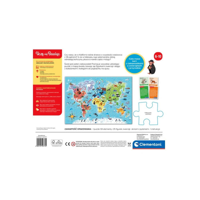 Clementoni 50779 hariv pusle viktoriinid loomad avastame maailma õpin mängides poola keel