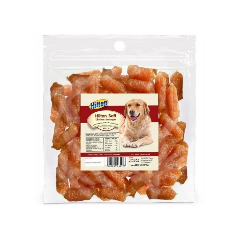 HILTON Soft chicken sausages are gluten-free, natural dog treats suitable for all breeds. They contain no artificial colors, sugars, or soy, and come in a 500g sack.Osta kohe, viimased eksemplarid laos!