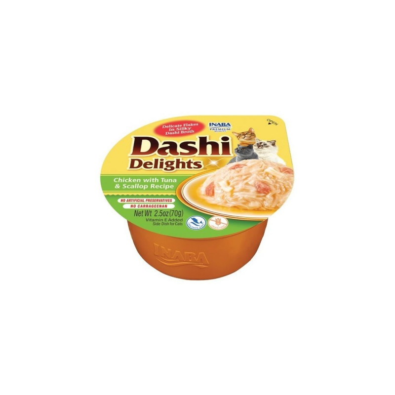 Inaba Dashi kana, tuunikala ja kammkarbiga hõrgutis - täiendsööt kassile.