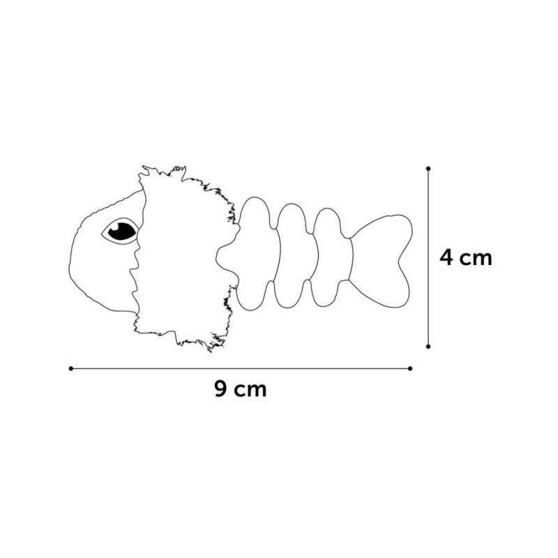 Kala kujuline mänguasi kassile, mis on valmistatud tekstiilist ja kokkupressitud naistenõgesest.