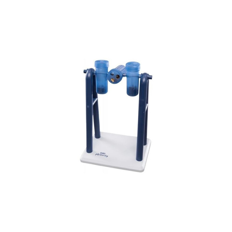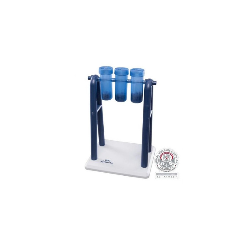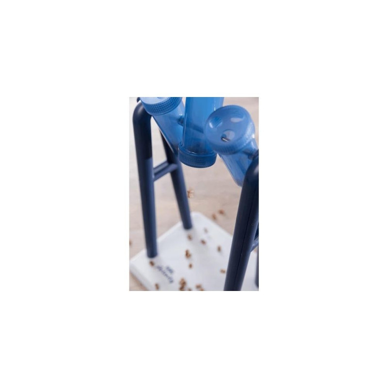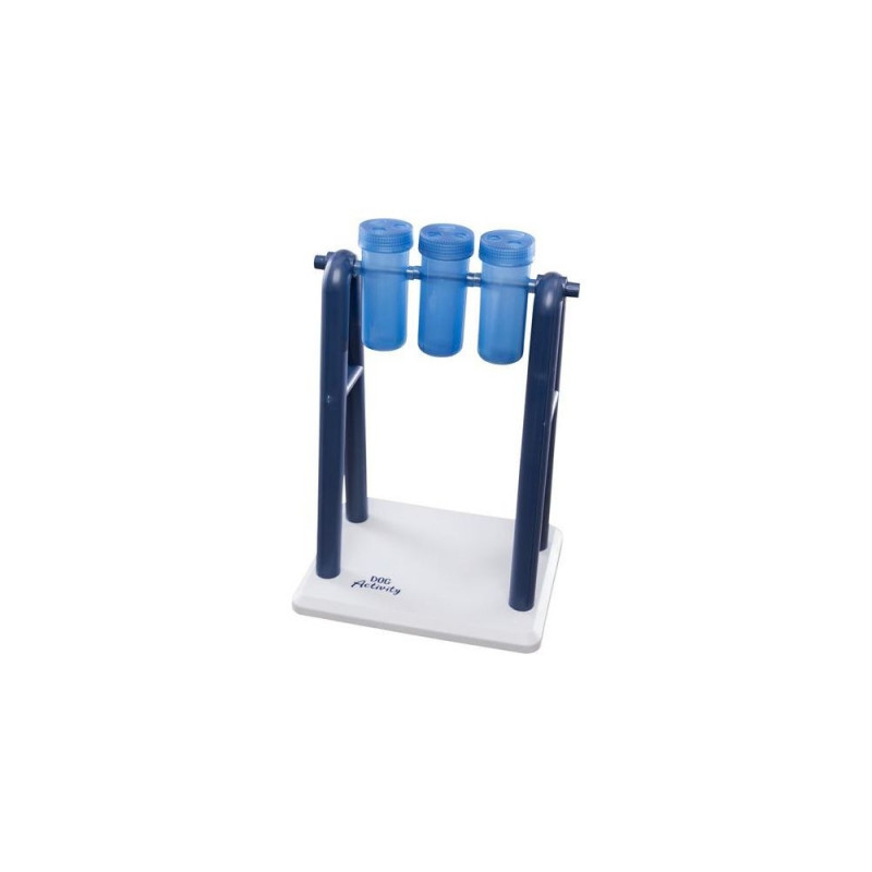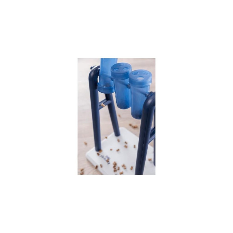 <b>Brain Jogging with "Turn Around"</b><br>Dogs are happy about a change in their daily routine. The "Turn Around" ensures that your furry friend can play happily. The dog activity toy consists of a stand with three rotating cups and two corresponding lids each. You can fill the cups with different snacks. The goal is for your pet to move the rotating elements with her snout or paw until the treats fall out.<br><br>If you want to increase the level of difficulty of the dog game, you can replace the "one-hole lid" with the one with three small holes and thus challenge your pet even more. In the enclosed instructions you will find many helpful tips for optimal training. The rotating elements of the strategy toy are dishwasher suitable.TRIXIE Turn Around Strategy Game. Pet type: Dog, Product type: Interactive toy, Product colour: Blue, White. Width: 220 mm, Depth: 180 mm, Height: 330 mm