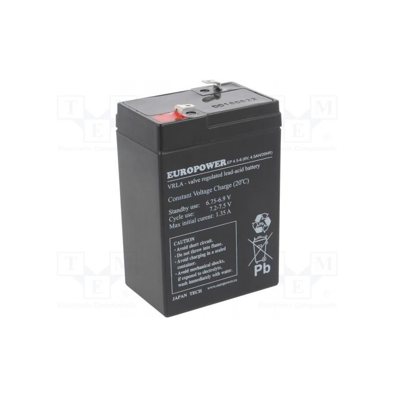 BATTERY 6V 4.5AH VRLA/EP4.5-6 EUROPOWER EMU