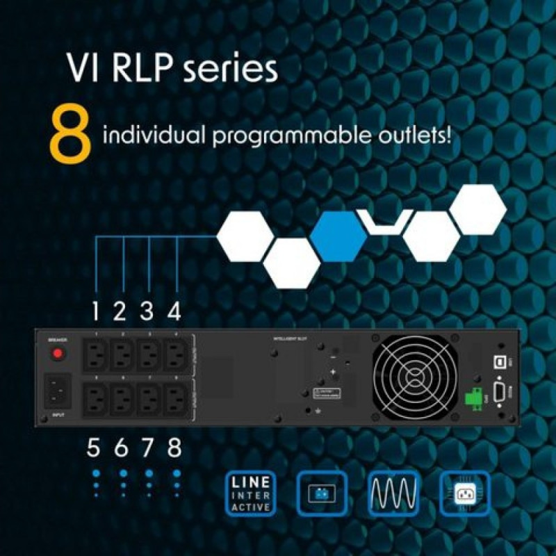 The PowerWalker VI RLP is a compact 2U Line-Interactive series with rack design. This UPS is the perfect outlet manager and will let you control the outlets individually. Remote switching, reboot each outlet, organize a schedule for the outlets, the possibilities are endless! With an output power factor of 0.9 and pure sine wave output, even the small models can cover most needs and loads. Batteries are easily replaceable by every user.