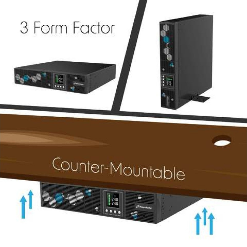 In addition, the UPS can be mounted under a counter or table, thanks to the included installation mounts.