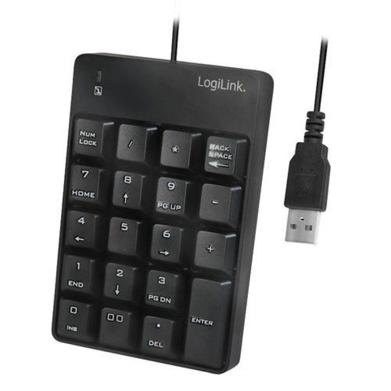 Missing the numeric keypad on your notebook keyboard? The additional USB Keyboard with numeric keypad from LogiLink is easy to connect and allows you to use numbers and functions like a standard keyboard with integrated number pad. No drivers required and self powered via USB port.LogiLink ID0184. Keyboard number of keys: 19, Purpose: Laptop. Cable length: 1.6 m, Product colour: Black. Weight: 102 g