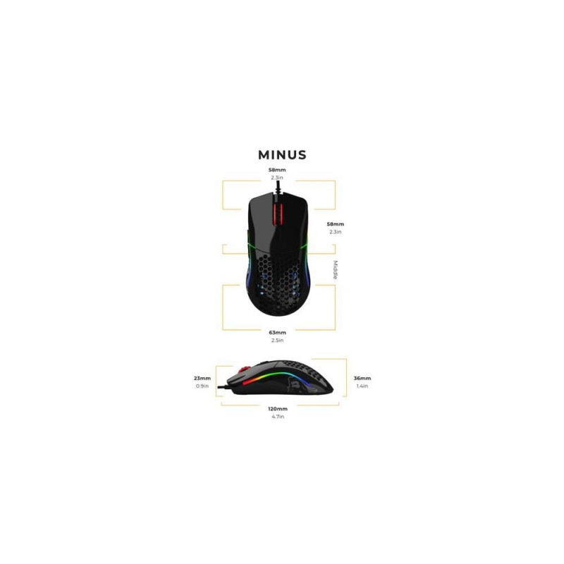 The most comfortable lightweight RGB gaming mouse comes in at just 58g in a superlight honeycomb design. Built to last, with 20M click-rated Omron switches, in an Ambidextrous shape. Its impossibly lightweight frame contains a full suite of ultra-premium features.<br>Glorious Gaming Glorious Model O- Mouse Glossy (Black). Form factor: Right-hand. Movement detection technology: Optical, Device interface: USB Type-A, Movement resolution: 3200 DPI, Buttons type: Pressed buttons, Buttons quantity: 6, Scroll type: Wheel. Illumination colour: Multi. Power source: Cable. Product colour: Black