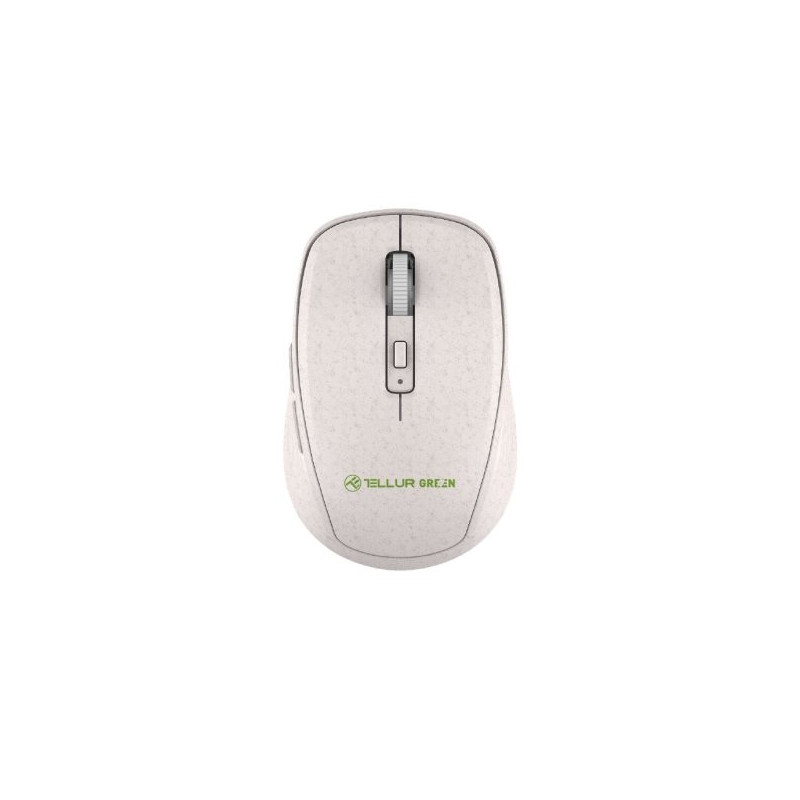 Funktsioonid Valmistatud ECO materjalidest: 35% nisu põhukiud ja 65% ABS Intuitiivne kasutamine plug & play installiga Nano-vastuvõtjat saab ebamugavuste vältimiseks hoida USB-pordis Reguleeritav DPI eraldusvõimeTehnilised andmed Suurus: tavaline Ühendus: traadita 2,4 GHz, nanovastuvõtja USB Tööulatus: Max 10 meetrit Paigaldamine: Plug & Play Materjal: 35% nisuõled + 65% ABS Jalapadjad: teflon Funktsioonid: vasak-/paremklõps, kerimisratas, küljenupud tagasi/edasi. DPI reguleerimise nupp, toitenupp Aku säästmise režiim: pärast 10-minutilist jõudeolekut klõpsake uuesti aktiveerimiseks mis tahes nuppu Eraldusvõime: 1000/1200/1600 DPI reguleeritav Seadme mõõtmed: 105 x 65 x 34 mm Seadme kaal: 125 g Pakett sisaldab: Telluri roheline juhtmeta hiir 1 x AA patarei 1 x nanovastuvõtja (patareipesa sees)