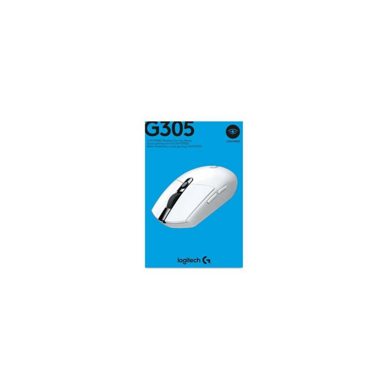 <br />Logitech G G305 LIGHTSPEED Wireless Gaming Mouse. Form factor: Right-hand. Movement detection technology: Optical, Device interface: RF Wireless + Bluetooth, Movement resolution: 12000 DPI, Response time: 1 ms, Buttons type: Pressed buttons, Buttons quantity: 6, Scroll type: Wheel, Acceleration (max): 40 G. Illumination colour: Blue, Green, Red. Power source: Batteries. Product colour: White