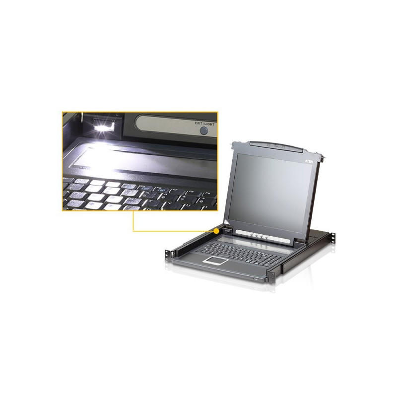 Muud funktsioonid | Exclusive LED illumination light - designed by ATEN to illuminate the keyboard and touchpad to allow visibility in low-light conditions. Integrated KVM console with 17" or 19” LED-backlit LCD monitor – in a sliding housing with top and bottom clearance fo |