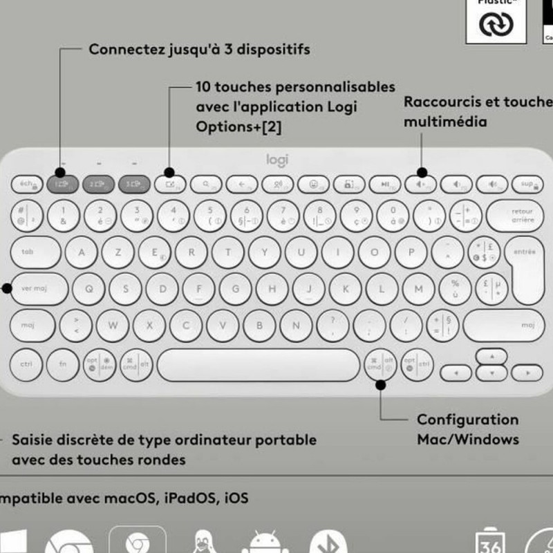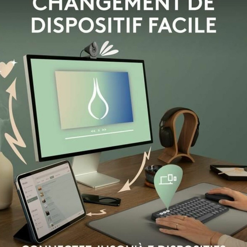 Bluetooth Klaviatuur, millel on Tahvelarvuti Tugi Logitech K380 Prantsuse Valge AZERTY