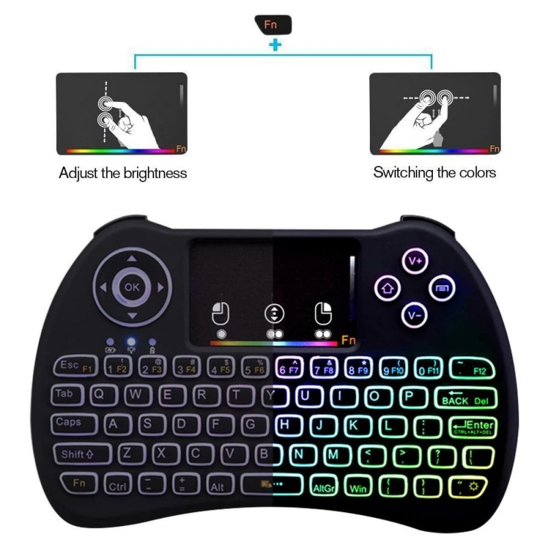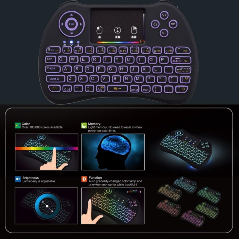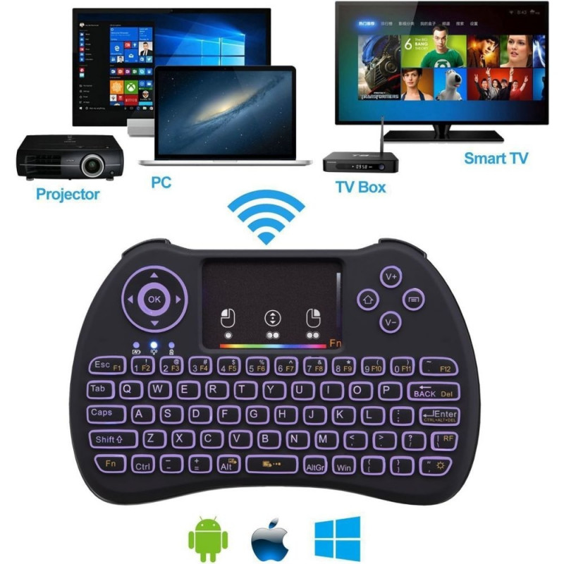 Fusion kompaktne juhtmevaba klaviatuur puuteplaadiga ja värvilise taustavalgustusega Android / iOS / TV / PC jaoks