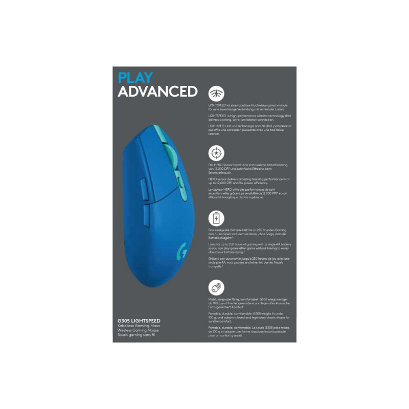 Product Description | Logitech G G305 - mouse - 2.4 GHz - blue |