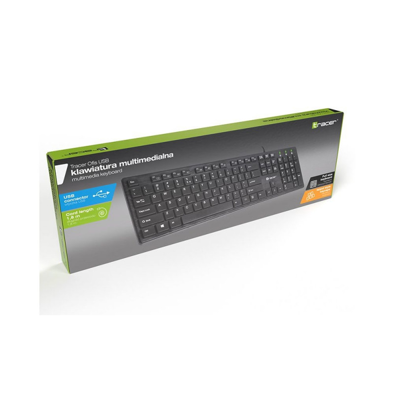 Täismõõdus klaviatuur Tracer Ofis on järjekordne liige kodu- ja kontorikasutuseks mõeldud klaviatuuride peres. Läbimõeldud konstruktsioon võimaldab mugavat mitmetunnist tööd ilma randmeid ja käsi koormamata. Tracer Ofis USB-ühendusega on klassikaline täismõõdus klaviatuur, mis sobib ideaalselt nii kontorisse kui ka koju.
