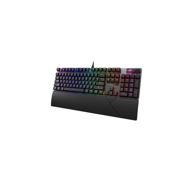 <b>ASUS ROG STRIX SCOPE II RGB Gaming Keyboard ROG NX Snow Mechanical Switches PBT Keycaps<br></b>ROG Strix Scope II gaming keyboard with pre-lubed ROG NX Snow and NX Storm mechanical switches, sound-dampening foam, PBT doubleshot keycaps or UV-coated ABS keycaps, streaming hotkeys, multi-function controls, three tilt angles, and wrist restASUS ROG Strix Scope II. Keyboard form factor: 96%. Keyboard style: Straight. Connectivity technology: Wired, Device interface: RF Wireless + USB, Keyboard key switch: Mechanical. Backlight type: RGB LED, Wrist rest. Cable length: 2 m. Recommended usage: Gaming. Product colour: Black