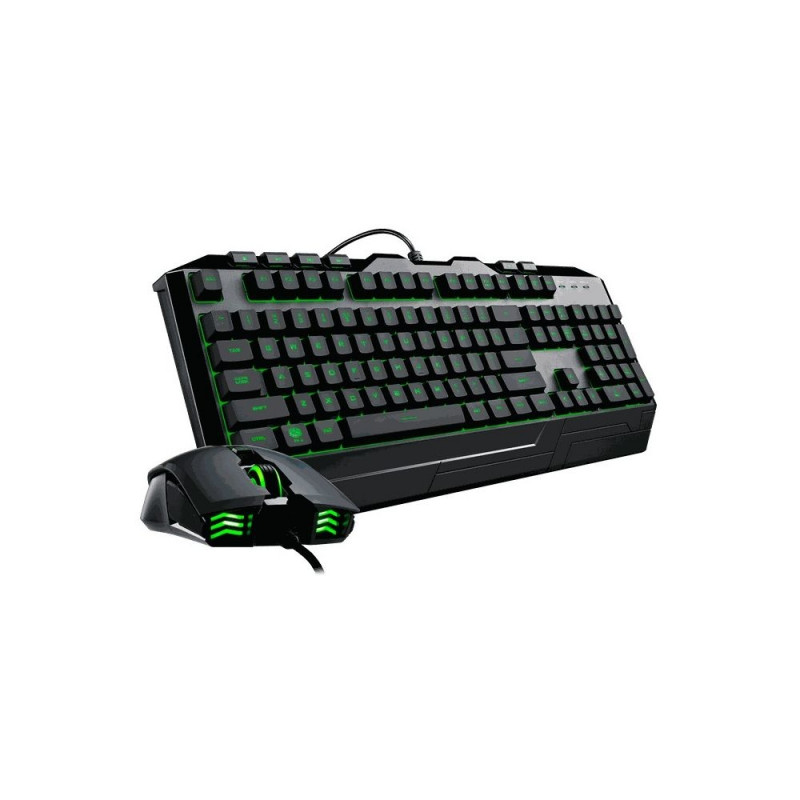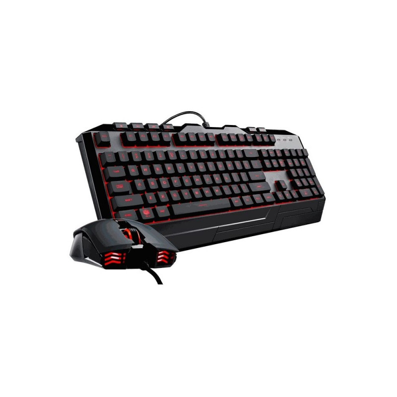 Cooler Master Gaming DEVASTATOR 3. Klaviatuuri vorming: Täissuurus (100%), Ülekandetehnoloogia: Juhtmega, Seadme liides: USB, Klaviatuuri lüliti: membraanlüliti, Klaviatuuri paigutus: QWERTZ. Taustvalgustuse tüüp: RGB-LED. Kaabli pikkus: 1,8 m. Soovitatav kasutus: Mängimine. Toote värvus: Must. Hiir kaasas