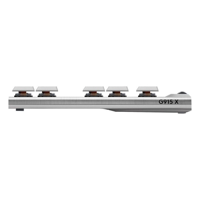 "Logitech G G915 X LIGHTSPEED. Klaviatuuri vormifaktor: Tenkeyless (80–87%). Klaviatuuri stiil: Sirge. Ühendustehnoloogia: Juhtmega ja juhtmevaba, seadme liides: USB + RF Wireless + Bluetooth, klaviatuuri lülitid: Mehaanilised lülitid, klaviatuuri paigutus: QWERTZ. Taustvalgustuse tüüp: LED. Kaabli pikkus: 1,8 m. Soovitatav kasutus: Mängimine. Toote värvus: Valge."