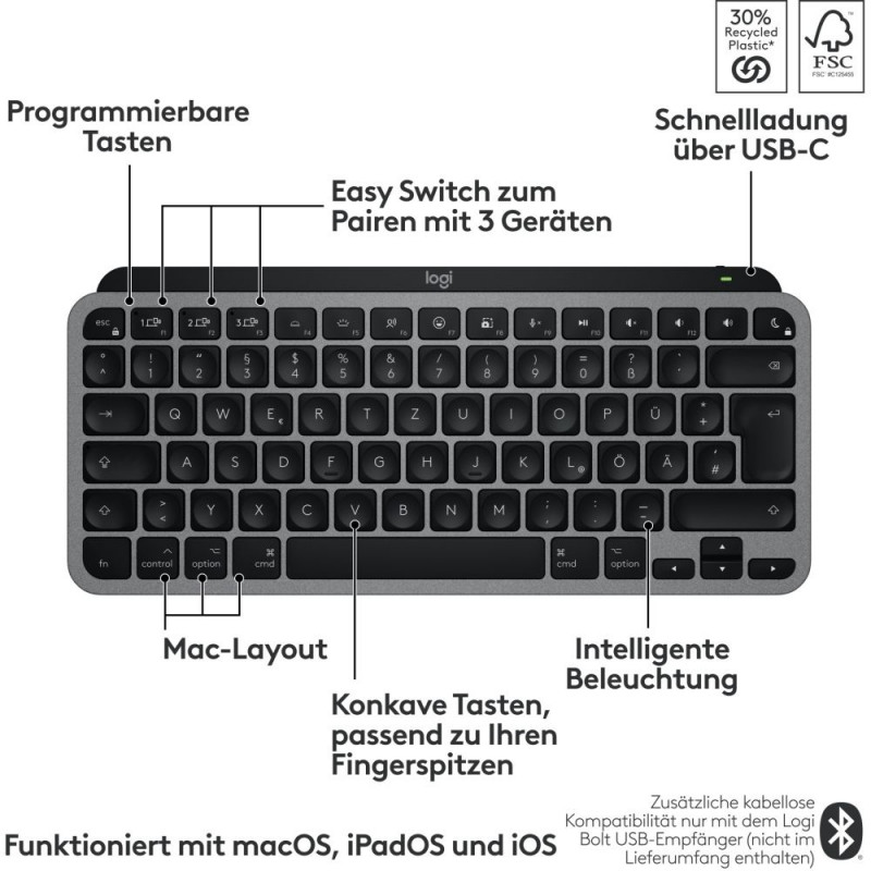 "Logitech Master Series MX Keys Mini Tatstatur Space Grau"