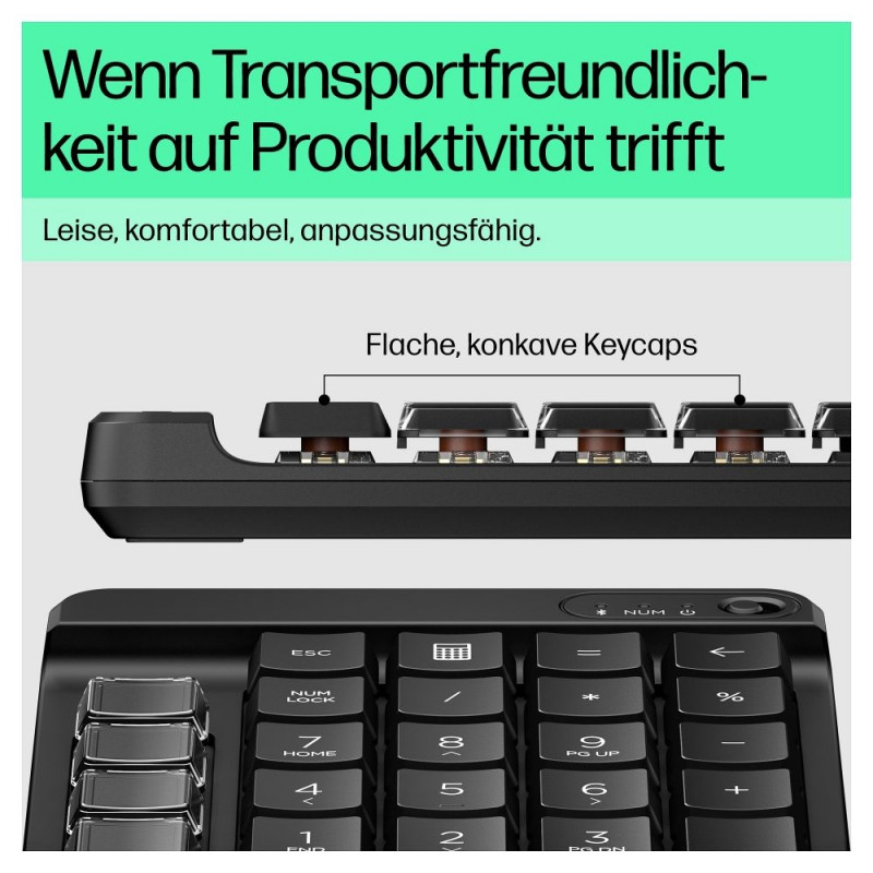 HP 435 programmeeritav juhtmevaba klahvistik. Seadme liides: Bluetooth, klaviatuuri lüliti: mehaaniline lüliti. Toote värv: must. Kaal: 256 g