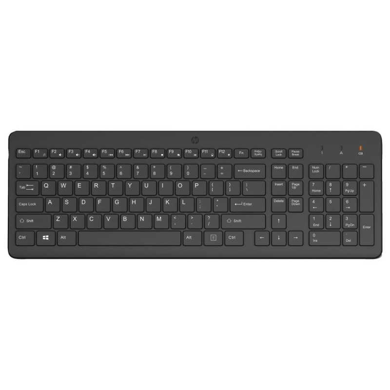 HP 225 juhtmevaba klaviatuur. Klaviatuuri vormifaktor: Täissuurus (100%), Ülekandetehnoloogia: Juhtmevaba, Seadme liides: RF-juhtmevaba, Soovitatav kasutus: Universaalne. Toote värvus: Must