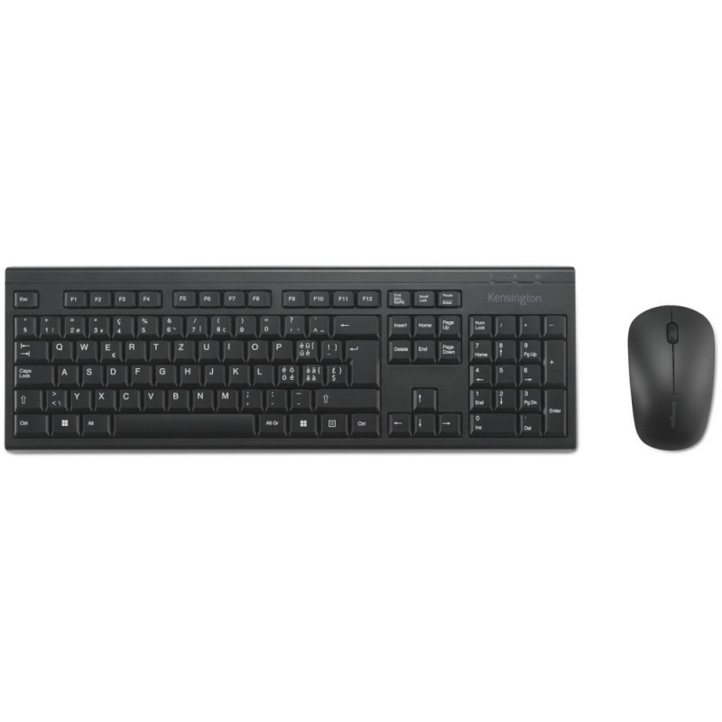 Kensington KM150 EQ juhtmevaba klaviatuuri ja hiire komplekt. Klaviatuuri vormifaktor: täissuurus (100%), Ülekandetehnoloogia: juhtmevaba, Seadme liides: RF-juhtmevaba, Klaviatuuri lüliti tüüp: membraanlüliti, Klaviatuuri paigutus: QWERTZ, Klaviatuuri klahvide arv: 105, Soovitatav kasutus: kontor. Toote värvus: must. Hiir kaasas.