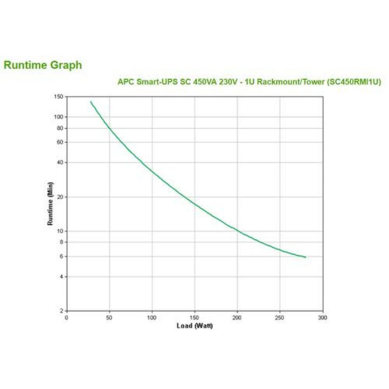 This product is part of the Smart-UPS range, an intelligent and efficient network power protection offer from entry-level to scalable runtime. This 450VA/280W line-interactive UPS provides pure sine wave power to support critical electronics during power disruptions. The 1U rackmount SC features network grade protection, live swappable batteries, and built-in data line protection. It comes with IEC 320 C14 input, 4x IEC 320 C13 outlets and 2x IEC jumpers. The UPS has a 2-year warranty. Its dimensions are 383mm (depth) x 44mm (height) x 432mm (width) and weighs 10.18kg. Ideal for networking equipment and POS devices. It conforms to C-Tick, CE, EAC, GOST, TISI, and VDE. Designed for small and medium businesses looking to protect networking equipment and point-of-sale (POS) devices from power disturbances and outages.APC Smart-UPS SC 450VA 230V - 1U Rackmount/Tower. UPS topology: Line-Interactive, Output power capacity: 0.45 kVA, Output power: 280 W. AC outlet types: C13 coupler, Power plug: C14 coupler, AC outlets quantity: 4 AC outlet(s). Battery technology: Sealed Lead Acid (VRLA), Battery capacity: 108 VAh, Typical backup time at full load: 5.9 min. Form factor: Rackmount/Tower, Product colour: Grey, Rack capacity: 1U. Compliance certificates: RoHS, Certification: C-tick, CE, GOST, VDE, PEP, EOLI