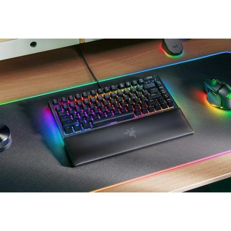 <b>SWAP OUT. SWAP IN. GAME ON.</b><br>For those who crave greater customization and immersion, satisfy your enthusiast needs with the Razer BlackWidow V4 75%—a compact, hot-swappable mechanical keyboard powered by Razer Chroma RGB. From installing new switches to creating unique lighting effects, shape it to the way you love to play.<br><br><b>HOT-SWAPPABLE DESIGN<br>Compatible with 3 or 5‑pin Switches</b><br>The hot-swappable keyboard’s socketed PCB allows you to easily change its pre-loaded switches for custom ones to achieve your desired key feel.<br><br><b>RAZER™ ORANGE TACTILE MECHANICAL SWITCHES GEN‑3<br>Pre-Loaded for Tactile, Quiet Keystrokes</b><br>Razer Orange Tactile Mechanical Switches feature quieter actuation while delivering a satisfying tactile bump with every keystroke, making it the perfect choice for those who want tactility without the clicks. Factory lubricated with GPL 205g0.<br><br><b>COMPACT 75% LAYOUT WITH ALUMINUM TOP CASE<br>Balanced Functionality and Greater Durability</b><br>The keyboard’s streamlined layout still includes a function row and arrow keys to cover essential commands, while its aluminum top case ensures a solid, yet compact build.<br><br><b>OPTIMIZED TYPING EXPERIENCE<br>With Satisfying Acoustics</b><br>Featuring a gasket-mounted FR4 plate, tape-enhanced PCB, lubricated stabilizers, and two layers of sound dampening foam, enjoy light, balanced keystrokes that sound full and satisfying.<br><br><b>MULTI-FUNCTION ROLLER AND MEDIA KEYS<br>Convenient Control</b><br>Pause, play, skip and tweak everything from brightness to volume—the ultimate convenience as you enjoy your entertainment.<br><br><b>MAGNETIC PLUSH LEATHERETTE WRIST REST<br>Extra Gaming Comfort</b><br>The soft, cushioned keyboard wrist rest provides long-lasting comfort, allowing you to power through the most intense gaming marathons.<br><br>Razer BlackWidow V4. Keyboard form factor: 75%. Keyboard style: Straight. Connectivity technology: Wired, Device interface: USB, Keyboard key switch: Mechanical, Keyboard layout: QWERTY. Backlight type: RGB LED, Wrist rest. Recommended usage: Gaming. Product colour: Black
