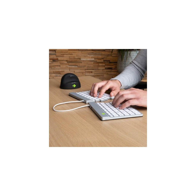 The R-Go Split Break keyboard is an ergonomic split keyboard with integrated break software. This keyboard encourages you to take regular breaks. This keeps your body's blood flowing, prevents strain and keeps you fit during your working day. The keyboard consists of two separate parts, which you can place in any arrangement you like. This splitting prevents a kink in the wrists while typing. Typing with straight wrists reduces muscle tension and prevents pinching of tendons and blood vessels. The built-in magnet allows you to turn the two separate parts of the keyboard into a compact keyboard with one move. The compact size ensures that the mouse is always within reach. The light keystroke means minimal muscle tension is present while typing. The keyboard is flat, keeping your hands and wrists flat and relaxed while typing. LED colour signals in the keyboard indicate how healthy you are working and when it is time for a break. As you type, the light changes colour, like a traffic light. Green means ‘good job’, orange that it is time for a break, red that you have been working too long. Through these subtle colour signals, you receive feedback on your pause behaviour in a simple and positive way. This product works with the R-Go Break Software that won the Benelux Office Product Award 2021.R-Go Tools Ergonomic keyboard R-Go Split Break with break software, ergonomic split keyboard, QWERTY (US), Bluetooth, white. Connectivity technology: Wireless, Device interface: Bluetooth, Keyboard layout: QWERTY. Cable length: 1.5 m. Recommended usage: Office. Product colour: White