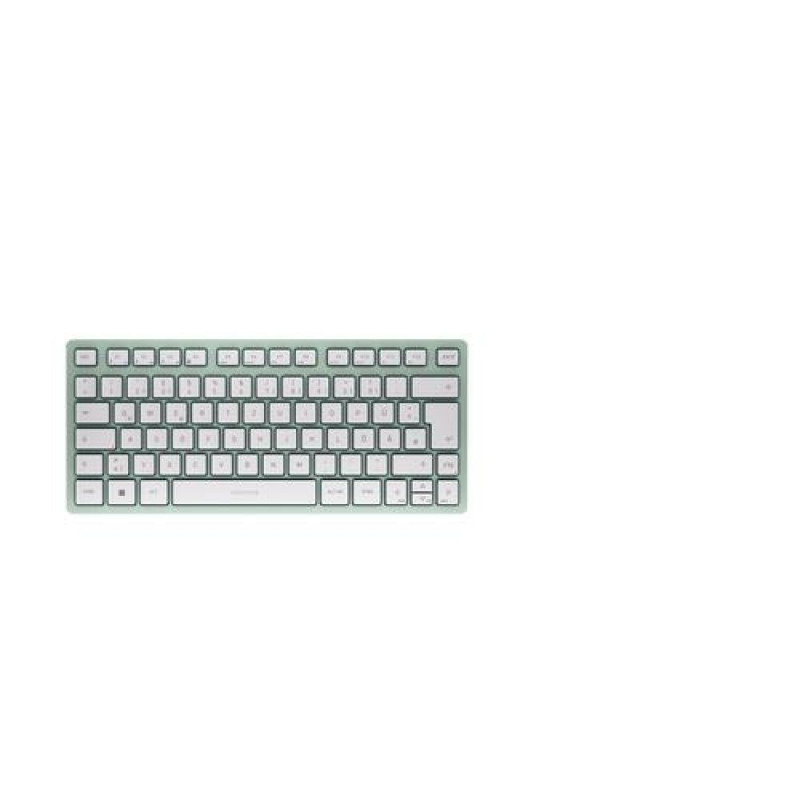 The CHERRY KW 7100 MINI BT is a compact Bluetooth® wireless keyboard that is perfect for use on the go. Ideal for both personal and professional purposes: The multi-device keyboard can be connected to up to three different devices at the same time. The carry case provided makes the keyboard easy to store and transport, meaning it is always ready for use.<br>The three Bluetooth® 5.1 channels enable use with multiple devices. You can easily switch between the equipment you have connected and control whichever device you need by simply pressing the F1 to F3 keys. The KW 7100 MINI BT is compatible with virtually any Bluetooth®-enabled device, including desktop PCs, notebooks and tablets*.*Supported operating systems: Windows; Android™ and Chrome OS with some restrictions<br>Our CHERRY SX scissor mechanism guarantees precision. The slightly concave keys resemble a laptop keyboard and enable smooth and effortless typing — all while making very little noise.<br>The CHERRY KW 7100 MINI BT is not only an ideal choice because of its excellent typing features, but also because of its minimalist design. Due to its compact dimensions, the keyboard takes up very little space on your desk — meaning that the MINI version is also ideal for working on the go in places where there is less work space available, such as in cafés or at university. The compact keyboard can even offer ergonomic advantages: The arm used to operate the mouse can be kept closer to the keyboard, which creates an improved shoulder posture and can prevent tension.<br>A closer look at the keys shows many special functions. The FN key not only provides access to Bluetooth® channels, image adjustment and volume control, but can also be used for multimedia functions such as play/pause and track selection. If you need to use these special functions permanently, the FN key can be locked with the simplepress of a key.<br>The status LEDs integrated into the keys indicate whether the FN-Lock key is activated, as well whether the Caps Lock key is activated and which Bluetooth® channel is currently in use. The CHERRY KEYS software can be used to assign your desired function to each key and is available to download free of charge.<br>The keyboard is delivered in completely plastic-free packaging, and also comes with a black carry case made of recycled plastic. The compact size of the KW 7100 MINI BT means it can be easily carried in a bag and can also be transported safely and securely from one place of use to another.<br>The CHERRY KW 7100 MINI BT boasts a minimalist design, ultra-slim dimensions, multi-device functionality and ergonomic benefits. With all these features, the wireless compact keyboard is in no way inferior to a full-size keyboard.CHERRY KW 7100 MINI BT. Keyboard style: Straight. Connectivity technology: Wireless, Device interface: Bluetooth, Keyboard key switch: Scissor key switch, Keyboard layout: QWERTZ, Keyboard number of keys: 79, Recommended usage: Universal. Product colour: Mint colour