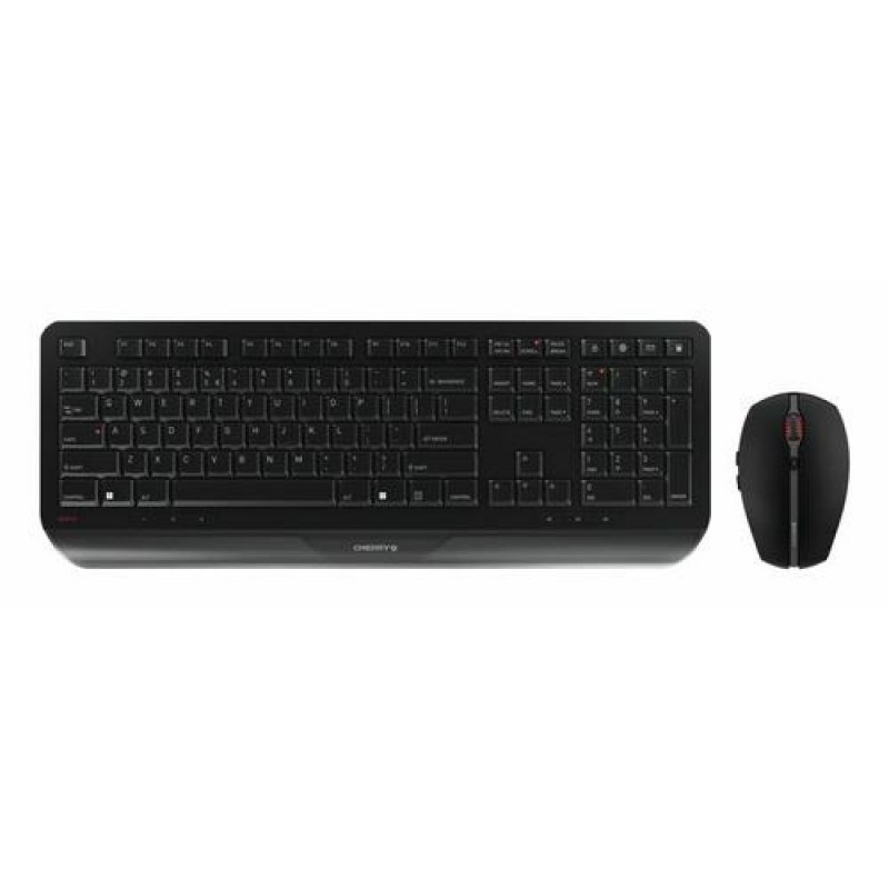 What could be more logical than to provide an ideal companion for one of CHERRY's best-known bestsellers? The GENTIX DESKTOP is the perfect fusion of the popular CHERRY GENTIX Mouse with an uncompromising, matching keyboard – both wireless! The GENTIX DESKTOP is a worthy addition to the Cherry GENTIX family. The progressive design was created with productivity in mind and will enhance your desk in every respect. The extensive equipment meets the highest quality standards that are usually only found in desktop sets in higher price ranges. The GENTIX DESKTOP is therefore the first choice – even for those on smaller budgets.<br><br><b>The modern allrounder for every budget</b><br>Everything a keyboard and mouse should be ... It should be chic. Offer good quality. It has to be durable. And of course, budget-friendly. Here it is, our new all-rounder among the desktop sets: The CHERRY GENTIX DESKTOP. It is the perfect fusion of the popular CHERRY GENTIX Mouse with an uncompromisingly matching keyboard - both wireless! So if you've held the CHERRY GENTIX Mouse in your hands before, you already know: Working with GENTIX products feels good and enhances your desk in every way!<br><br><b>... and with a special look for design lovers.</b><br>Like the CHERRY GENTIX Mouse, the CHERRY GENTIX DESKTOP is very generously equipped for the price level. It convinces those who take pride in their workspace aesthetics. The semi-transparent, translucent design of the wrist rest is undoubtedly an eye-catcher. We also made sure that it not only looks good but is also ergonomically up-to-date. The CHERRY GENTIX DESKTOP is, therefore, the first choice - even for limited budgets.<br><br><b>What matters is not only WHAT but also HOW you type.</b><br>As with all CHERRY products, one thing is of critical importance with our keyboards: a good typing experience. This also applies to our CHERRY GENTIX DESKTOP. You will feel it when you type for the first time - the keys move smoothly and have the optimal pressure point. The arrangement of the keys and the key spacing are just right.<br><br><b>Integrated status LEDs and multimedia buttons</b><br>The three status LEDs for caps, num, and scroll lock integrated directly into the keys are also practical. And once you have them, you won't want to be without the 10 multimedia keys. You quickly get used to the lock, browser, mail, and calculator functions.<br><br><b>With the CHERRY GENTIX mouse, you can go back and forth with a click of the thumb.</b><br>Thumb buttons, do you need that? YES! Anyone who once had a mouse with thumb buttons doesn't want any other mouse. With the wireless mouse from the CHERRY GENTIX DESKTOP set, you can easily navigate the Internet using two thumb buttons. You determine how fast the pointer moves across the screen: with the pointer speed's two-stage setting. Of course, we have retained the unique, tapering shape of the CHERRY GENTIX Mouse in the wireless version as it fits hands both large and small perfectly.<br><br><b>Stability with a long service life.</b><br>Many users who have been working with CHERRY keyboards and mice for a long time know: We keep our promises! Quality and stability are incredibly important to us. This is why the CHERRY GENTIX DESKTOP keyboard has three, instead of the usual two, rubberized feet. In combination with the generally stable construction, the CHERRY GENTIX DESKTOP stands rock-solid on your desk. Nothing slips - regardless of whether the feet are folded out or not. Another decisive product feature is the palm rest, which provides comfortable support when typing for a long time. It is a defining design component and, at the same time, makes everyday life easier.<br><br><b>Experience more freedom via wireless independence.</b><br>Unpack and you're done: Thanks to plug & play, the wireless keyboard/mouse combination is instantly ready for use and does not require any software. If you still want to make adjustments, you can use the free CHERRY KEYS software to reprogram the additional keys and F keys according to your own preferences. Fans of wireless freedom can look forward to a battery life of up to three years. Because in addition to design and ergonomics, we also have user-friendliness and the environment in mind<br><br><b>CHERRY GENTIX DESKTOP, mouse and keyboard - 10 reasons which make it a good choice:</b><br>- Proven CHERRY technology<br>- Chic and ergonomic design<br>- Integrated palm rest<br>- Flat height<br>- High-quality standard thanks to robust construction<br>- Durable key labeling<br>- 3 stable feet<br>- Wireless 2.4 GHz technology (up to 10 m range)<br>- Battery life up to 3 years and integrated battery status display<br>- Symmetrical 6-button mouse with switchable resolution (1,000/2,000 dpi)CHERRY GENTIX DESKTOP. Keyboard form factor: Full-size (100%). Keyboard style: Straight. Connectivity technology: Wireless, Device interface: RF Wireless, Keyboard layout: QWERTY, Keyboard number of keys: 114. Wrist rest. Recommended usage: Home/Office. Product colour: Black. Mouse included