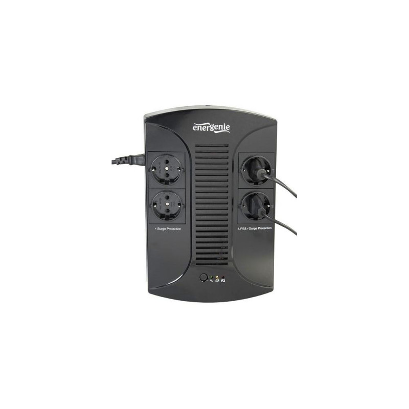 Uninterruptable 650 VA power supply with modified sine wave output<br>Automatic AC voltage regulation (AVR)<br>Intelligent surge-, overload- and short-circuit protection on all 4 sockets<br>UPS battery backup on 2 sockets ( optional 4 pcs ) <br>Audible and visual alarms<br>LED status indication<br>Intelligent battery management with overcharge and over-discharge protection<br>Wall mountableEnerGenie EG-UPS-001. UPS topology: Line-Interactive, Output power capacity: 0.65 kVA, Output power: 390 W. AC outlet types: Type F, Power plug: C13 coupler, AC outlets quantity: 4 AC outlet(s). Battery technology: Sealed Lead Acid (VRLA), Battery capacity: 7 Ah, Battery voltage: 12 V. Product colour: Black. Compliance certificates: RoHS