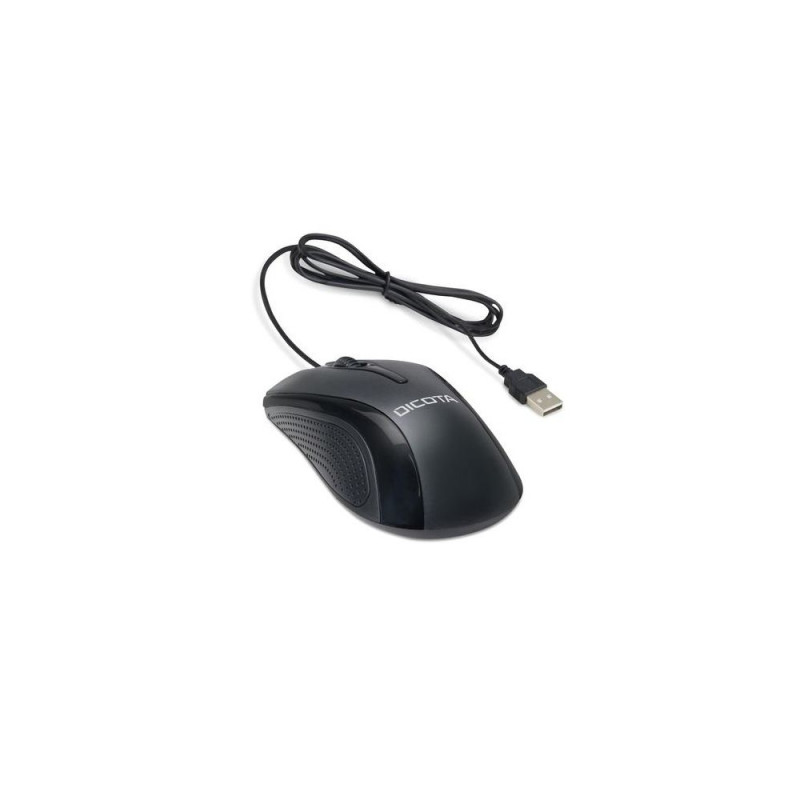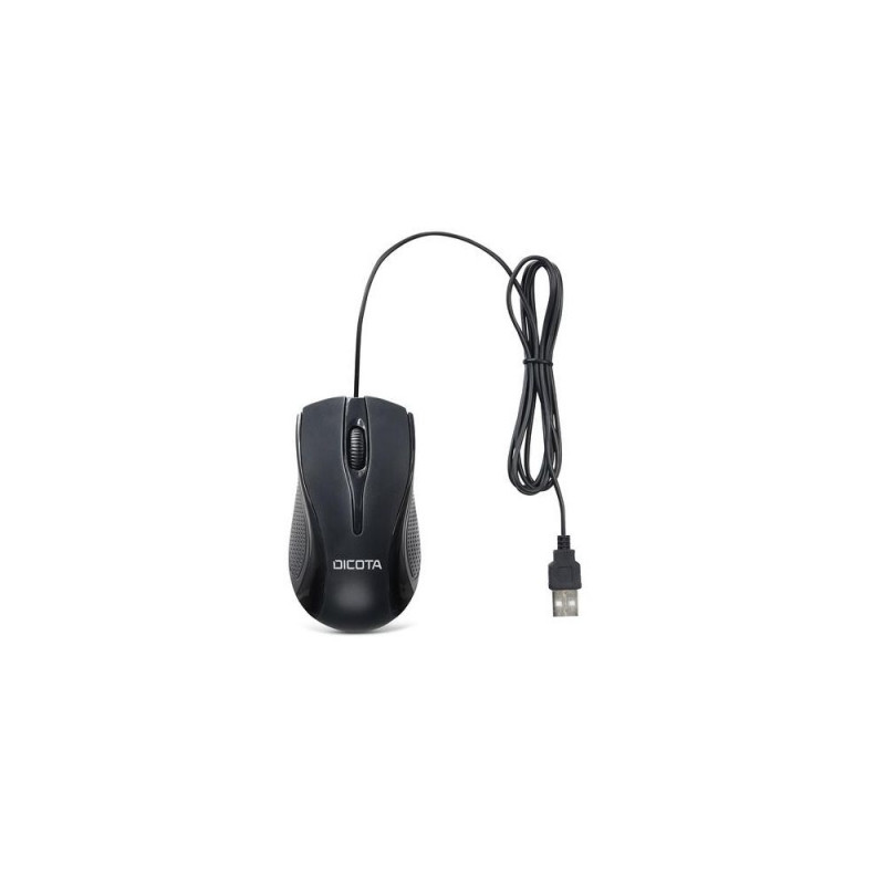 The wired mouse with USB cable for everyone who needs to be able to work anywhere.<br><br>With the precise 1,200 dpi sensor you can complete even the most demanding tasks in no time at all. There is no need to install any additional software, as the mouse works with USB Plug & Play. The USB cable has to be plugged into the notebook or computer and the mouse is ready to start within a few seconds. Suitable for left-handers as well as right-handers, even for hours of use.DICOTA D32011. Form factor: Ambidextrous. Device interface: USB Type-A, Movement resolution: 1200 DPI, Buttons type: Pressed buttons, Buttons quantity: 3, Scroll type: Wheel. Power source: Cable. Product colour: Black