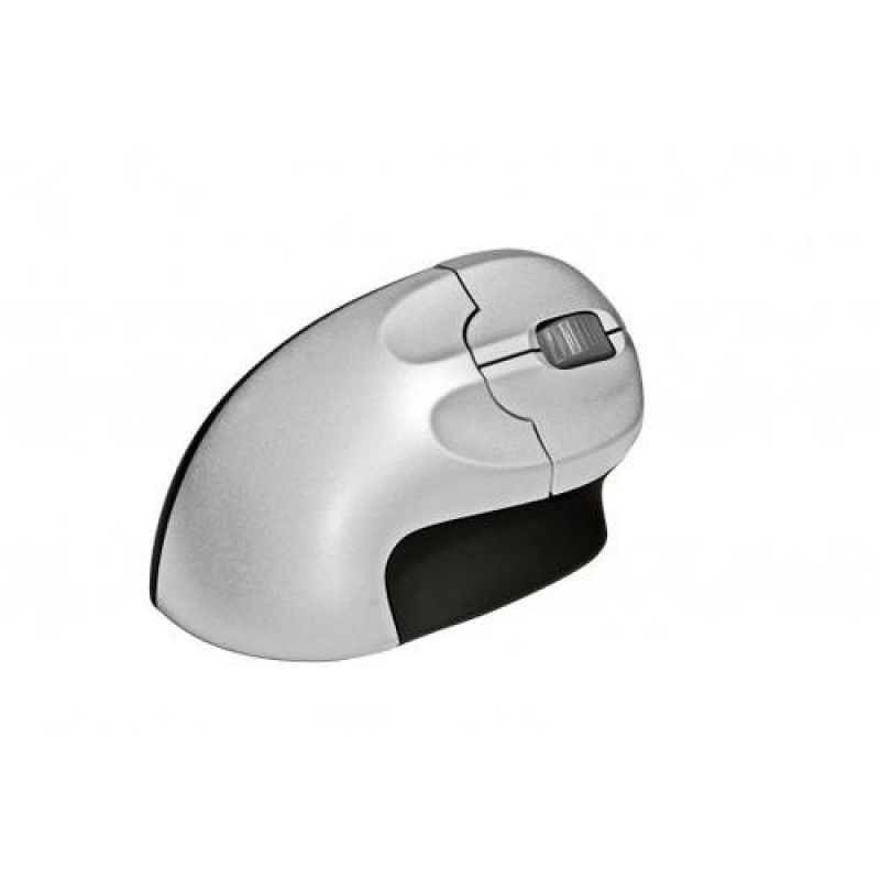 <b>Grip Mouse</b><br>Vertical mouse with a welcome price.<br><br>The ergonomic shape of the mouse guarantees a healthier way of working. The extra wide, clickable scroll-wheel, the grooved left and right mouse-keys, and the optical sensor promise a convenient handling and precise movements. Start working with an ergonomic mouse, avoid physical complaints, and be more productive.<br><br><b>Extra wide scroll-wheel. Grooved buttons.</b><br>The Grip Mouse has an extra wide, clickable scroll wheel with notches, so you don’t slip of easily with your hand. The grooved left and right mouse-keys make sure that your fingertips rest in a shallow groove on the buttons. This ensures a good handling for your mouse work and lead to more productivity.<br><br><b>The features.</b><br>The optical sensor of the Grip Mouse guarantees a precise movement of your mouse pointer. Connect the Grip Mouse with the USB cable or the USB receiver to your computer. The Grip Mouse is installed automatically and is immediately ready to use, thanks to its Plug & Play technology.<br><br><b>Nice design for any working environment.</b><br>The design of the Grip Mouse is silver-metallic with black and fits perfectly into any working environment. The Grip Mouse is appropriate for a successful mouse work in your fixed office or also in your home office.<br><br><b>Attractive price-performance ratio.</b><br>With the Grip Mouse we offer a vertical mouse for the entry level. Thanks to the vertical design, an ergonomic and healthier way of working is ensured for you.BakkerElkhuizen Grip Mouse Wireless. Form factor: Right-hand, Vertical design. Movement detection technology: Optical, Device interface: RF Wireless, Movement resolution: 1600 DPI, Buttons type: Pressed buttons, Buttons quantity: 3, Scroll type: Wheel. Power source: Batteries. Product colour: Black, Silver