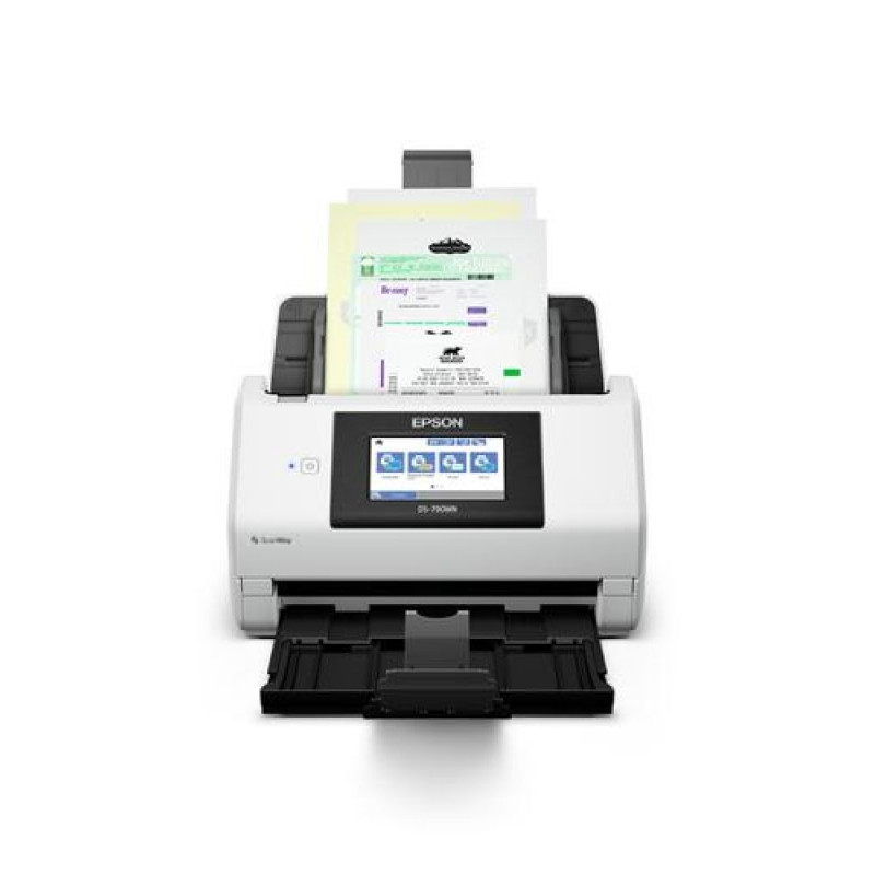 <br />Epson WorkForce DS-790WN. Maximum scan size: 215.9 x 6096 mm, Optical scanning resolution: 600 x 600 DPI, Input colour depth: 30 bit. Scanner type: Sheet-fed scanner, Product colour: Black, White, Display: LCD. Daily duty cycle (max): 7000 pages, Scan to: E-mail, FTP, Software, Network folder, USB, Scan drivers: TWAIN, SANE, WIA, ICA, ISIS. Auto document feeder (ADF) input capacity: 100 sheets. Maximum ISO A-series paper size: A4, Scanning media types supported: Business Card, Envelopes, Plastic Card, Post Card(JPN), ISO A-series sizes (A0...A9): A4, A5, A6, A8