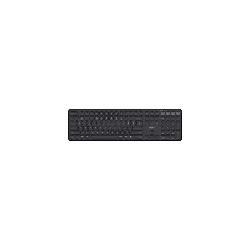 Full-size multi-device wireless keyboard providing easy, convenient connection between your devices<br><br><b>Four devices, one keyboard</b><br>Make the most of flexible working with the Vaiya Multidevice Wireless Keyboard. With the ability to easily connect up to four devices at once via 2.4GHz and 3x Bluetooth® by simply pressing the dedicated buttons, this keyboard is your ultimate partner for work at home or in the office.<br><br><b>Pump up the comfort</b><br>Type all day without any problems thanks to this keyboard’s full-size design and advanced low-profile laptop style scissor keys which offer ultimate typing comfort and precision.<br><br><b>Work away</b><br>Complete with a built-in rechargeable battery, you can work for up to 6 months non-stop without needing to charge. Offering the possibility to keep working whilst charging and fully recharged in just two hours, the Vaiya won’t let anything stop you from taking on your tasks!<br><br><b>Multi magic</b><br>Not only is this keyboard multidevice, but it also offer Multi-OS support (Windows, iOS, iPadOs, MacOS, Android, Chrome OS) AND has 13 multimedia Fn keys for a compact yet full-sized experience. It doesn’t get more multi than that!Trust Vaiya. Keyboard form factor: Full-size (100%), Connectivity technology: Wired & Wireless, Device interface: USB + RF Wireless + Bluetooth, Keyboard key switch: Scissor key switch, Recommended usage: Universal. Product colour: Black
