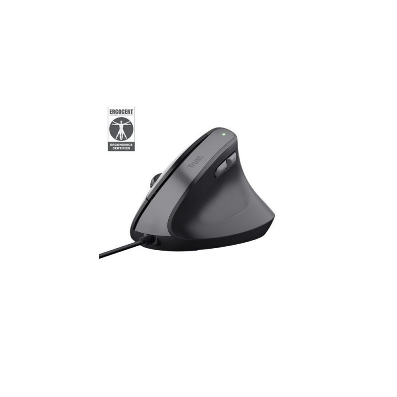Ergonomic mouse with optimal vertical angle for reduced wrist strain<br><br><b>Click into comfort</b><br>Get more pleasure out of your workday with the Bayo II. With an optimal 57 degree angle, this mouse has been ergonomically designed to put your arm and wrist in the most comfortable, natural position for happier working.<br><br><b>Recycled & remarkable</b><br>This mouse has been specifically designed to be good for you and good for the planet too. With a composition of 60% recycled plastics, it allows you to go about your day in a more sustainable way.<br><br><b>Two thumbs up</b><br>Your workday should be made as simple as possible, which is why the Bayo II comes with two easily accessible thumb side buttons which enable you to easily navigate forward and back. That’s two thumbs up from us!<br><br><b>Precision in your palm</b><br>Move with precision and accuracy thanks to this mouse’s speed select button. With the ability to switch between 800-2400 DPI, adjust the cursor speed to best fit whichever task you’re tackling.Trust Bayo II. Form factor: Right-hand, Vertical design. Device interface: USB Type-A, Movement resolution: 2400 DPI, Buttons quantity: 6, Scroll type: Wheel. Power source: Cable. Product colour: Black