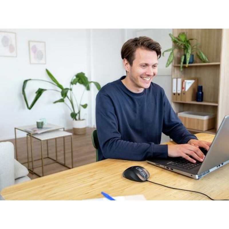 <b>Home, office, and environmentally friendly</b><br>Wherever you’re working, your mind can rest easy – the Fyda mouse is made from 52% recycled materials.<br><br><b>All-day comfort</b><br>A curved design offers hours of working comfort, keeping your hand and fingers fresh even on the busiest of days.<br><br><b>Finger(s) on the button</b><br>With 6 easily accessible buttons – for your fingers, thumbs, and to adjust DPI from 600 to 5000 – you’re always in complete control.Trust Fyda Wired mouse. Form factor: Right-hand. Movement detection technology: Optical, Device interface: USB Type-A, Movement resolution: 5000 DPI, Buttons type: Pressed buttons, Buttons quantity: 6, Scroll type: Wheel. Power source: Cable. Product colour: Black