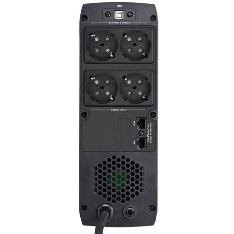 PowerWalker VI GXB is a premium line interactive UPS series with state of the art technology and design. The integrated AVR function and Pure Sinewave Output ensures clean and stable output during power outages or voltage fluctuations. The UPS functions can be monitored and controlled via USB communication, either with a software or without (HID).<br><br>As a Gamer your primary concern will be the protection and continuity of your Gaming PC, your router and your monitor. By doing so you will be able to bridge short outages and keep playing, or perform a safe shutdown during a longer interruption Furthermore, the UPS status can be color customizable so that you can visually recognize in which mode the UPS is.PowerWalker VI 1500 GXB. UPS topology: Line-Interactive, Output power capacity: 1.5 kVA, Output power: 900 W. AC outlet types: Type F, AC outlets quantity: 4 AC outlet(s), USB port type: USB Type A/USB Type-C. Battery capacity: 9 Ah, Battery voltage: 12 V, Typical backup time at full load: 3.5 min. Form factor: Rackmount, Product colour: Black, Cooling type: Active. Cables included: USB cable